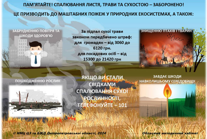 Остерігайтесь задимленості та обвалу конструкцій будинків і споруд, вибухів технологічного обладнання і приладів, падіння обгорілих дерев і провалів. Знайте де знаходяться засоби пожежогасіння та вмійте ними користуватися.